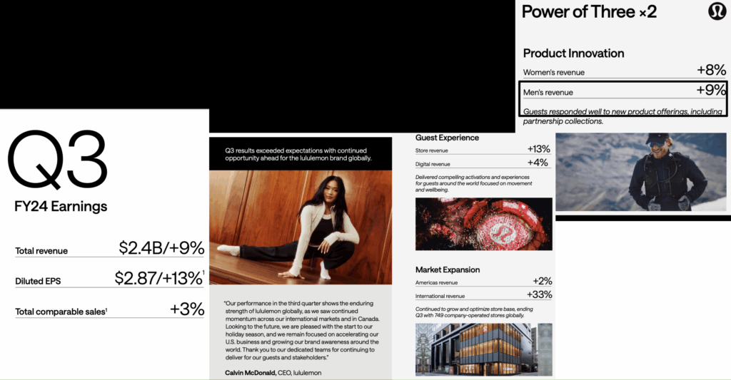 Attract and engage male consumers, a historically underrepresented segment in Lululemon’s customer base.